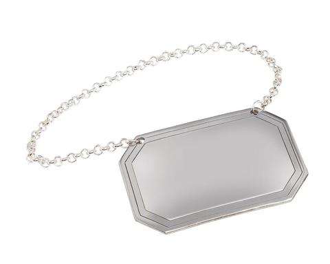 Etichetta personalizzata per bottiglia di vino in lega di zinco in metallo Decanter con catena